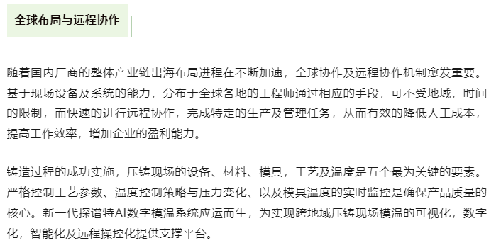 探谱特“AI数字模温系统”— 助力中国压铸企业布局海外